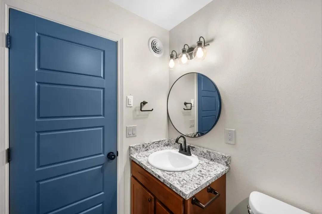 Two additional bedrooms share a modern second bathroom, ideal for family members or guests.